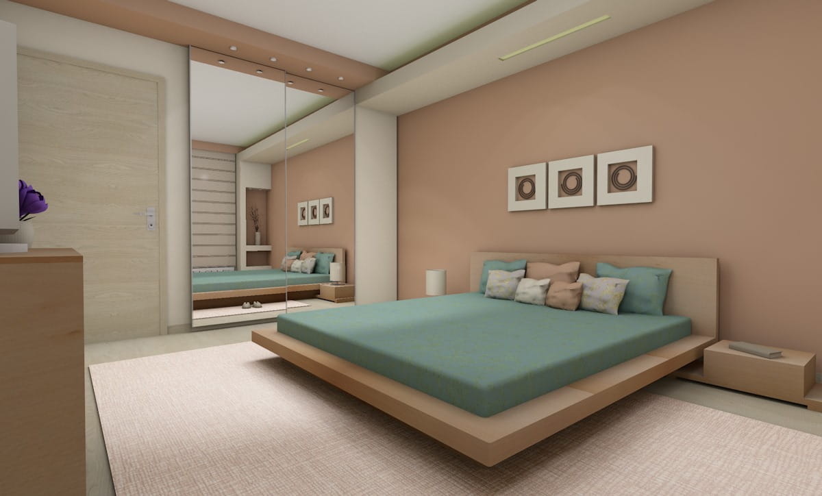 Οι θερμές αποχρώσεις όπως το ροδακινί και το σομόν δίνουν ζεστασιά στο χώρο του υπνοδωματίου και δημιουργούν ατμόσφαιρα ασφάλειας και θαλπωρής. Είναι καλές λύσεις για κρύα υπνοδωμάτια.
