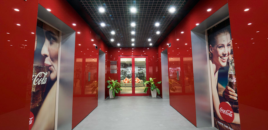 Κάποιες εταιρείες που χρησιμοποιούν στο λογότυπό τους το κόκκινο, παρασύρονται και το επιλέγουν ως κυρίαρχο χρώμα για τους χώρους των γραφείων τους.