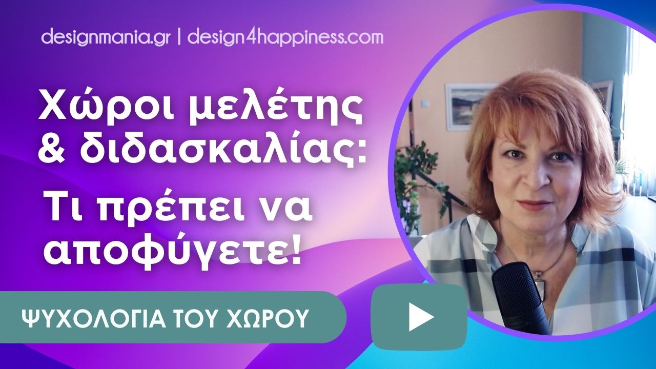 Σε αυτό το video μοιράζομαι μαζί σας τα ευρήματα δεκάδων επιστημονικών ερευνών για τι πρέπει να προσέξουμε στο σχεδιασμό χώρων μελέτης και διδασκαλίας.