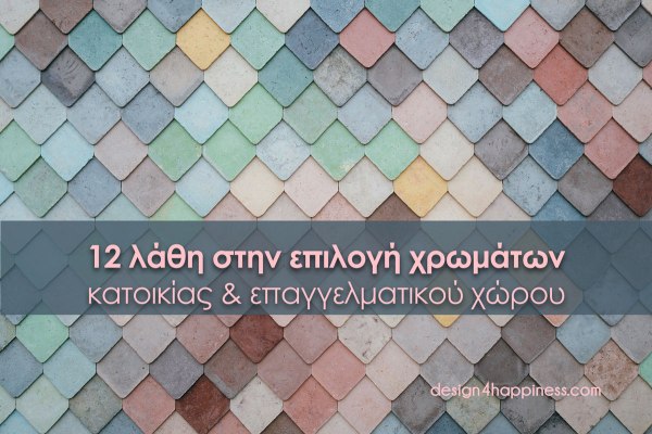 Η επιτυχημένη επιλογή χρωμάτων για μια κατοικία ή έναν επαγγελματικό χώρο είναι από τις δυσκολότερες εργασίες. Ποια είναι όμως τα συχνότερα λάθη που γίνονται στην επιλογή χρωμάτων μιας κατοικίας ή ενός επαγγελματικού χώρου; Αν τα γνωρίζετε είναι πιο εύκολο να τ' αποφύγετε.